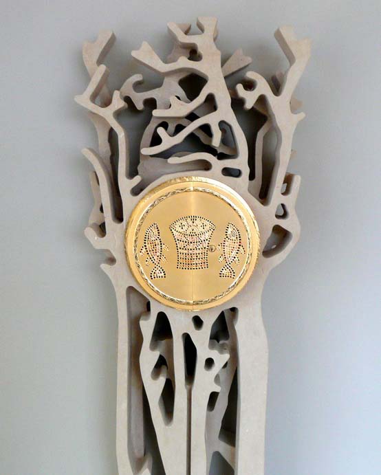sopra una pietra da cui scaturiva l'acqua ad Assisi dove si dissetava San Francesco. Progettato e realizzato per i frati dell'eremo San Felice a Cologna Veneta (VR)