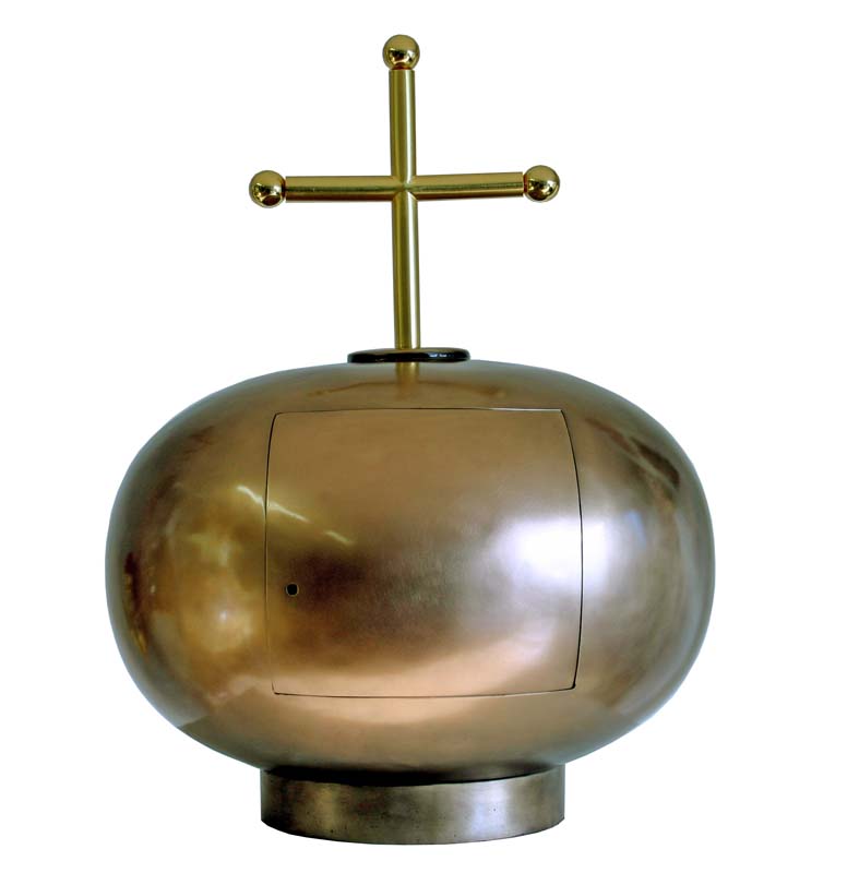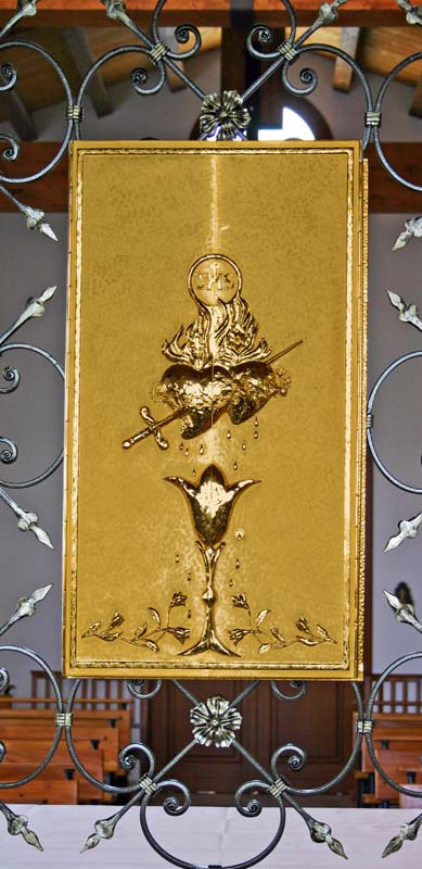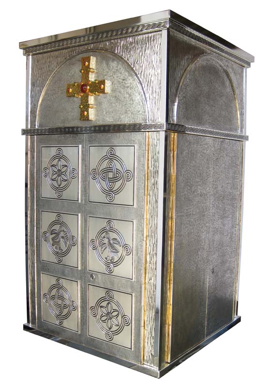 In stile bizantino con doppia porta su due lati. La portina principale è rifinita con formelle incise e applicate. Battuto a mano