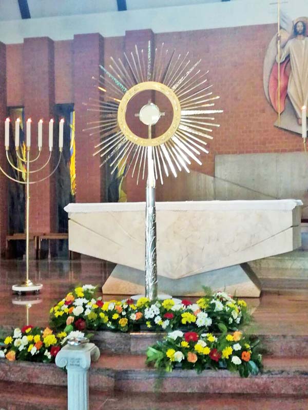Ostensorio davanti all’altare per l’ Adorazione del Santissimo. Stroppari (Vi) Italy